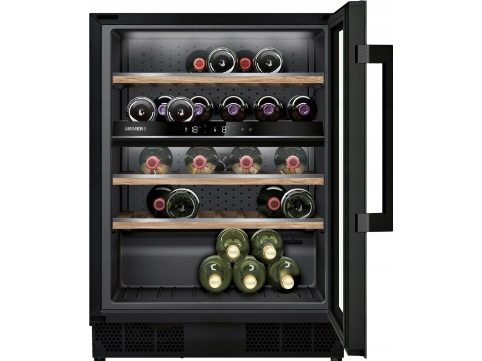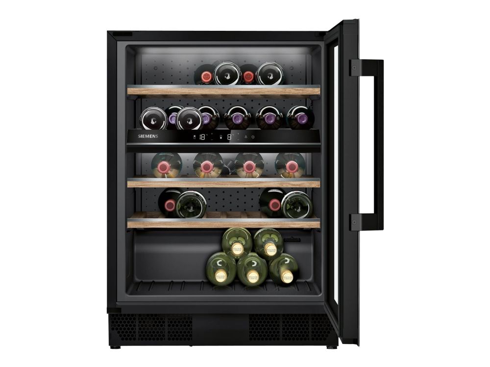 The specified bottle capacity is calculated with a Bordeaux bottle as standard and without shelves in the cabinet. That means that the actual number of bottles that the cabinet can hold, with shelves fitted, will be less than the quantity stated in the product specifications