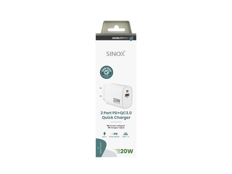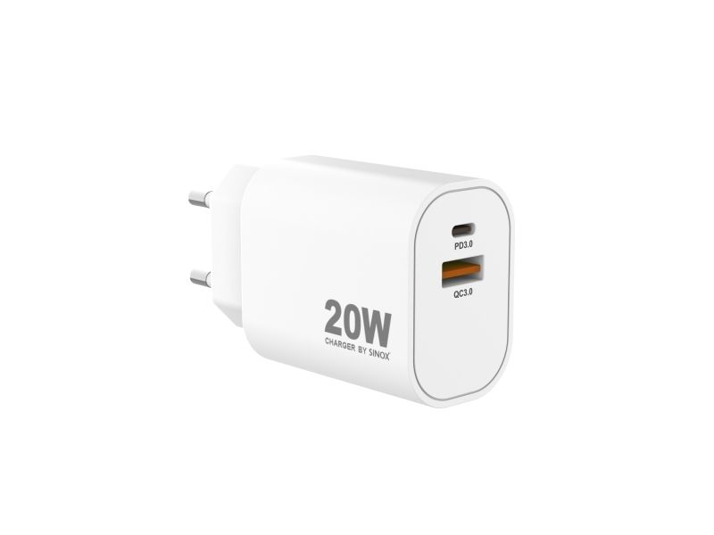 Sinox PRO charger 230V USB-A + USB-C 20W white