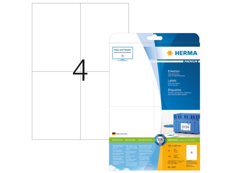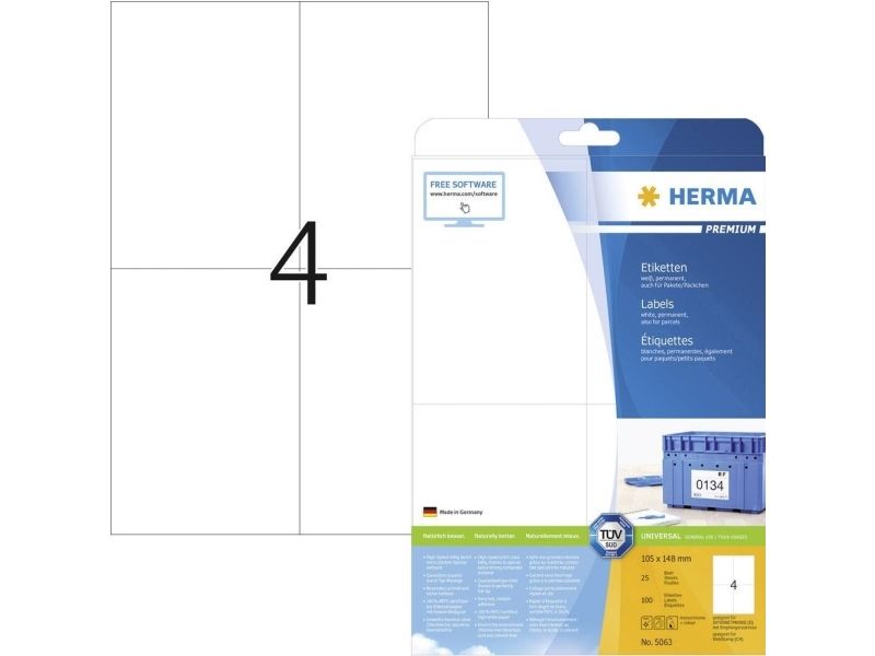 - Self-adhesive labels on A4 sheets, permanent adhesion - Perfect for all laser printers and inkjet printers, copiers, colour laser printers and colour copiers - High whiteness and uniform surface for perfect printing results in black-and-white or colour - Perceptibly thicker: extra-strong labels - easy to affix - Very fast, reliable adhesion, even on cool, moist surfaces - Guaranteed not to jam, with high-speed capability thanks to extra-strong special laminate, perfectly flat lay and all-round protective edge - Kind to the environment and sustainable: chlorine-free bleached, PEFC-certified, CO2-neutral, solvent-free adhesive - Labels are 100% recyclable, dispose of as for waste paper, packaging made from recycled cardboard - Free software solutions