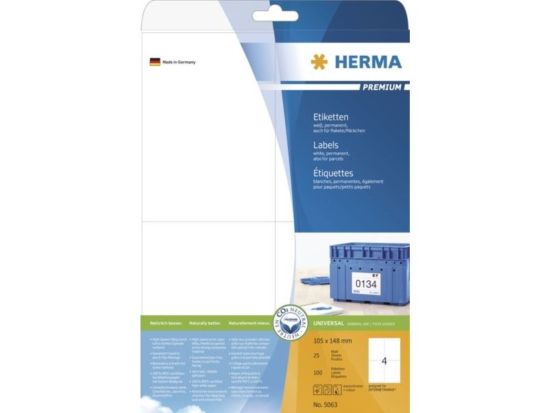 HERMA Premium - laminerede etiketter - mat - 100 etikette(r) - 148 x 105 mm