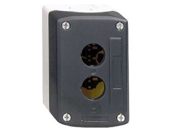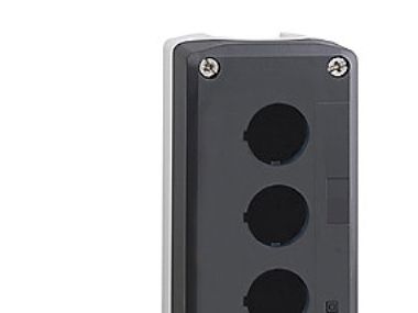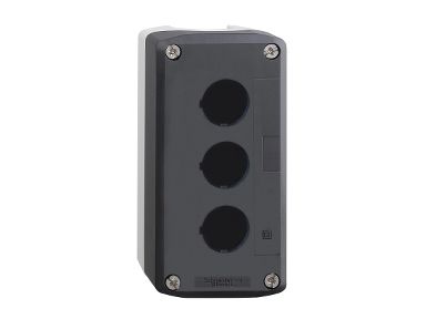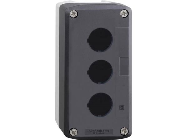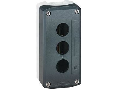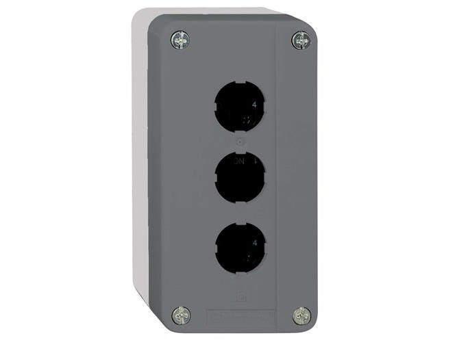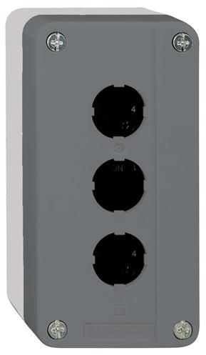 dark grey empty enclosure lid with light grey base - 3 cut-outs