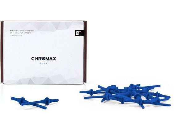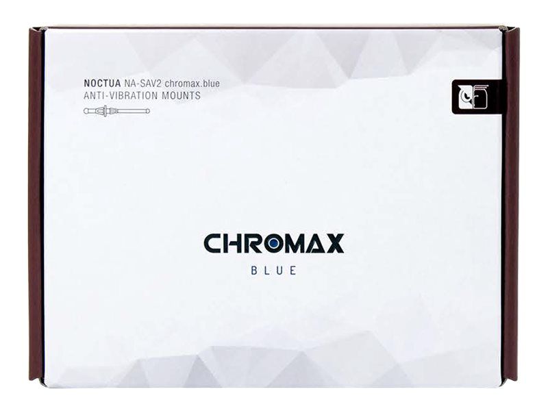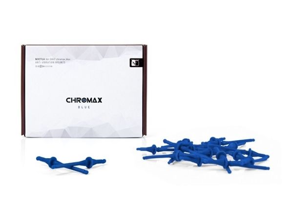 The NA-SAV2 chromax.blue is a fan accessory set consisting of 20 blue NA-AV2 anti-vibration mounts for up to 5 fans. Replacing standard fan screws, the NA-AV2 mounts enable the convenient, quick and vibration-free installation of fans in standard mounting holes for case fans. At the same time, the chromax.blue edition allows the addition of subtle blue accents to Noctua’s redux and industrialPPC fans in order to colour-coordinate them with individual build themes.