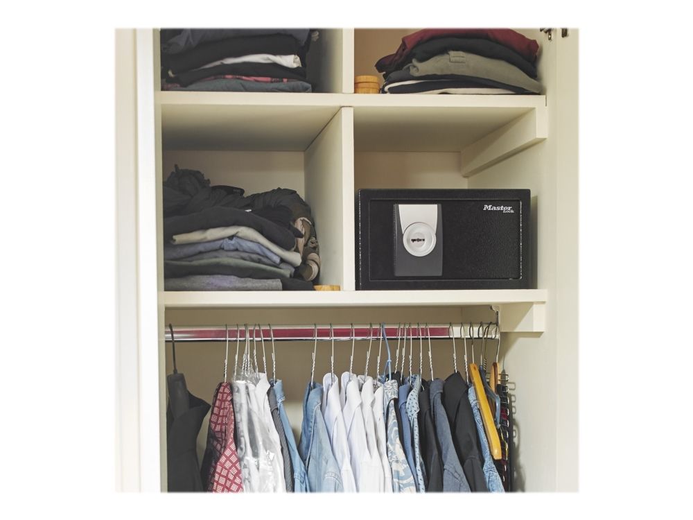 The Master Lock Small Keyed Safe is ideal for protecting small but precious valuables. The high security key helps keep your valuables safe from unauthorized access, while the carpeted floor keeps the content protected from scratching during storage.