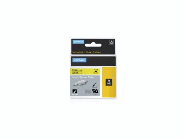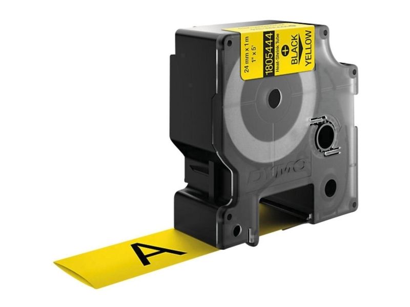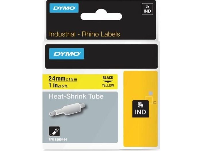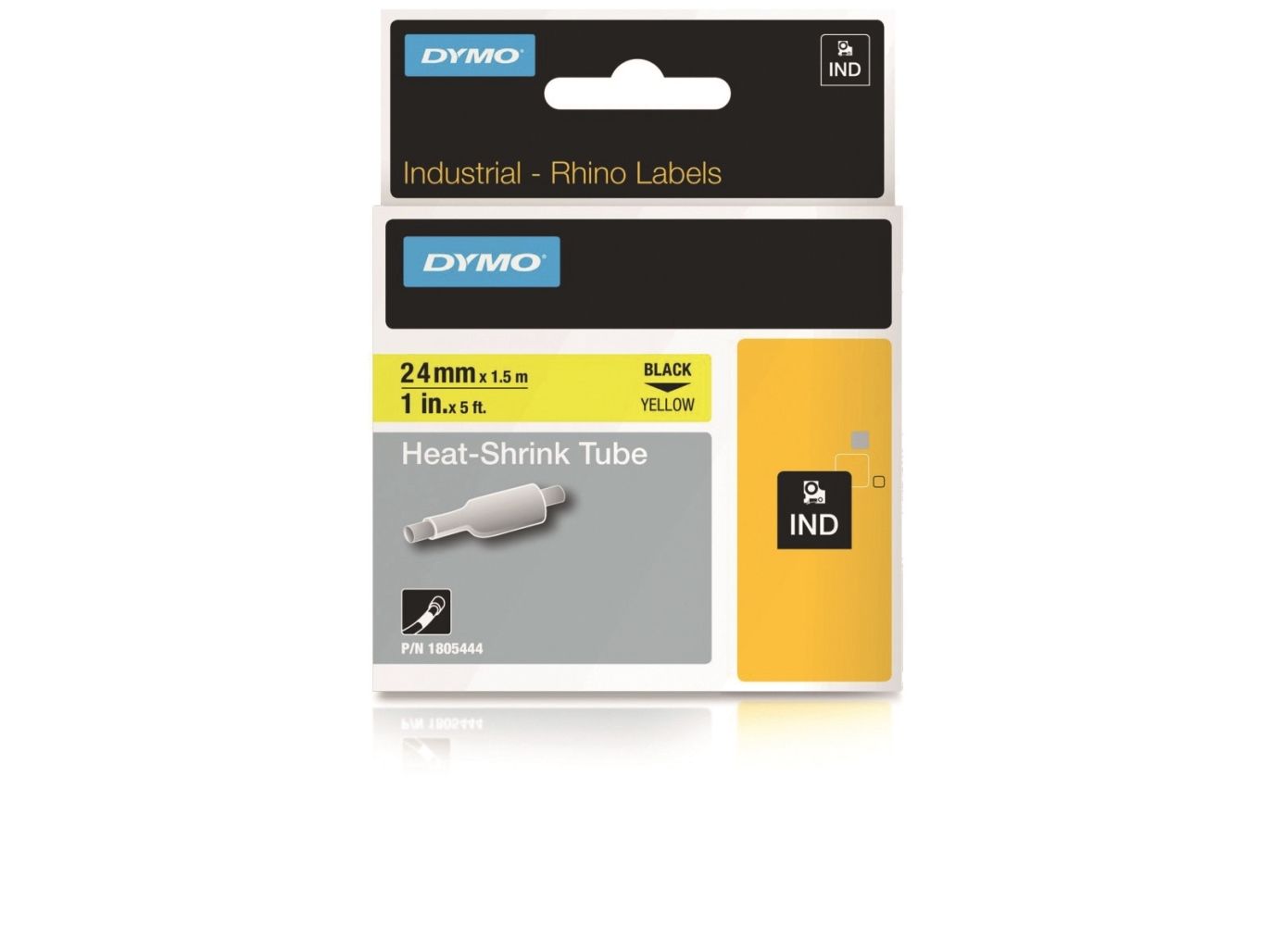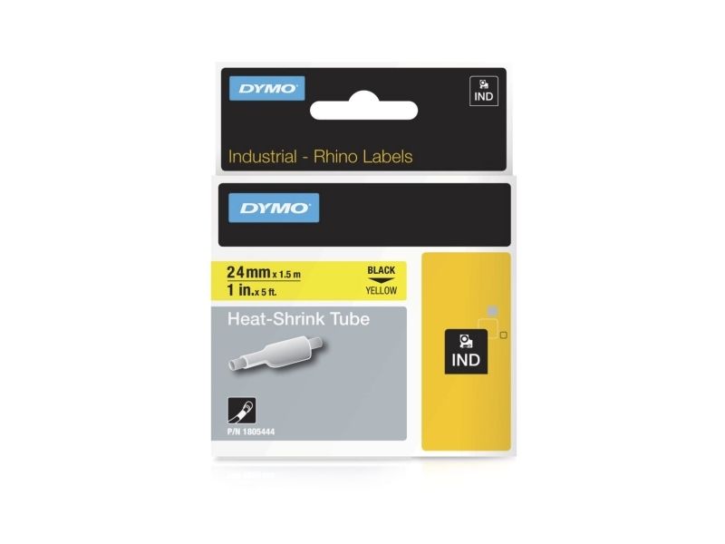 DYMO Rhino Industrial Heat-Shrink Cable Label Tubes | 24 mm x 1.5 m | Black Print on Yellow | for Rhino Label Makers, Black on yellow, Multicolour, Belgium, -55 - 135 °C, UL 224, MIL-STD-202G, MIL-81531, SAE-DTL 23053/5 (1, 3), Rhino