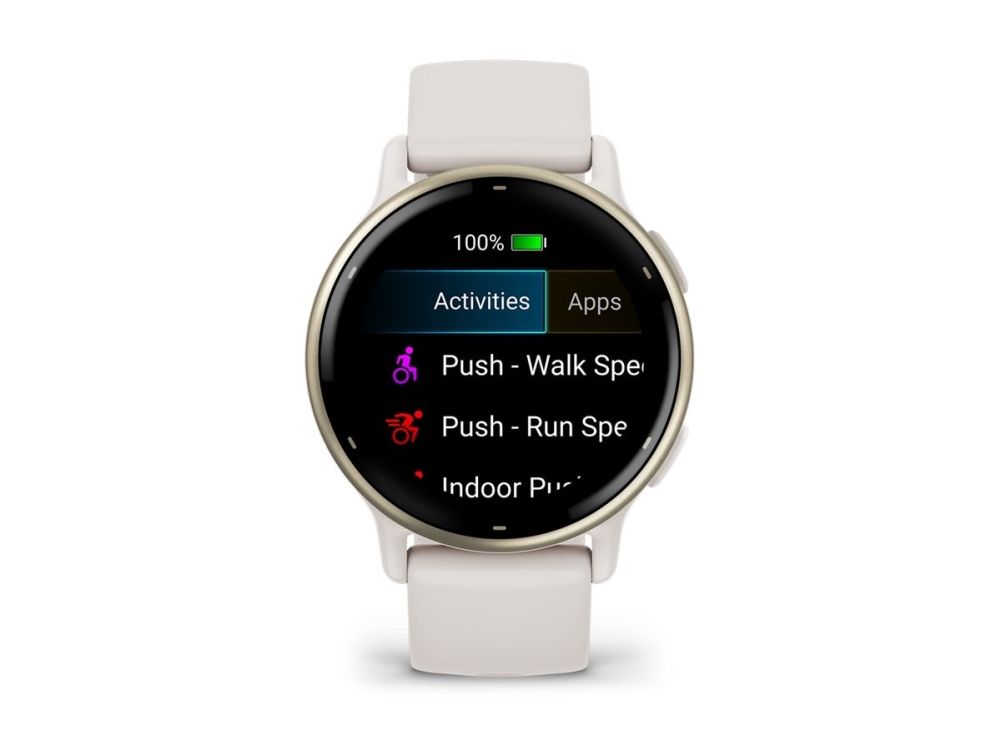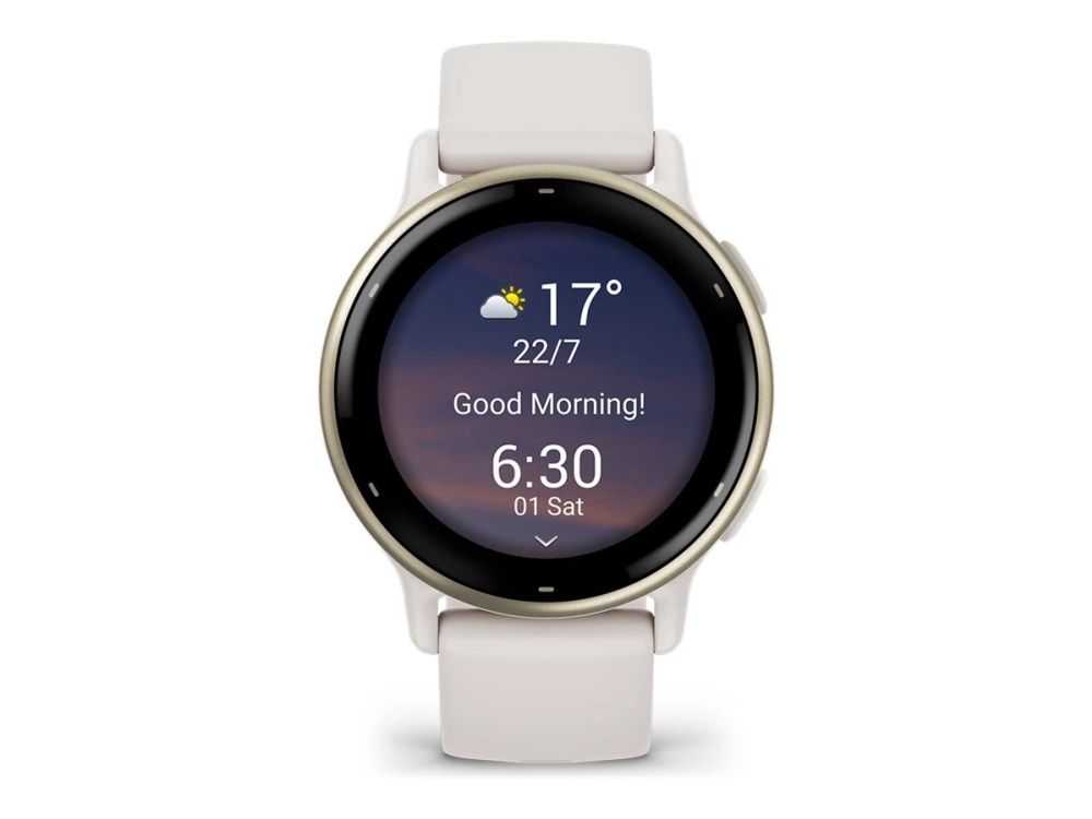 GPS-tidssynk., automatisk sommertid, alarm, timer, stopurstimer, solopgang/solnedgangstider, afslapningspåmindelser, Sleep Coaching, påmindelse om hydrering, Kvinders sundhed, helbredsbillede, tekstbeskedforudvisning, vejroplysninger, musikafspilningskontrol, lagr og afspil musik, find telefon-funktion, Find my Device, LiveTrack, kørestolstilstand