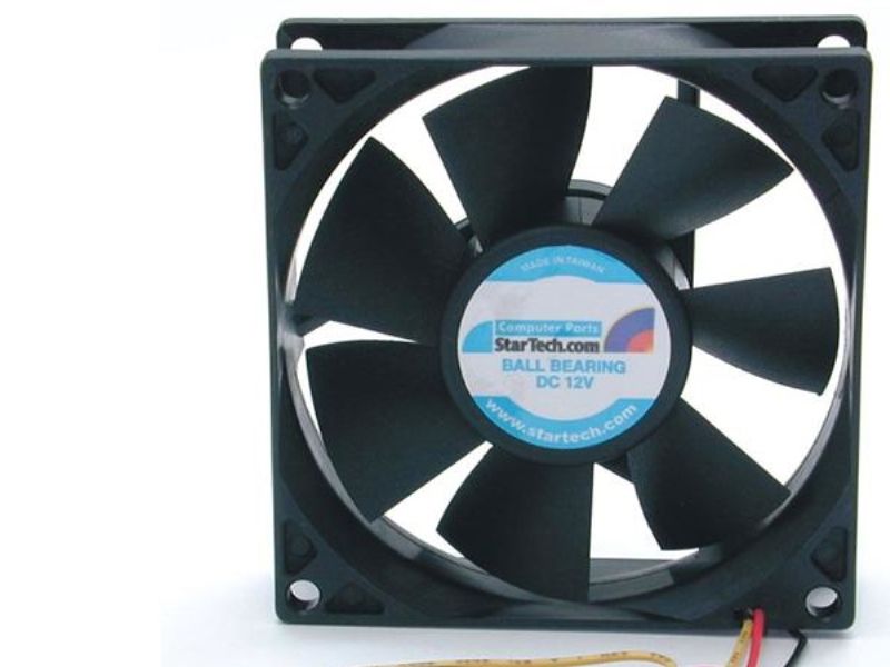 Add additional chassis cooling with a 80mm ball bearing fan. This versatile PC case fan measures 8cm x 8cm x 2.5cm (3 1/8" x 3 1/8" x 1"), designed to fit a broad range of computer case designs, helping to improve internal airflow within the computer case by circulating cool air into the case or exhausting warm air away from the computer. A quiet cooling solution, the 8cm dual ball-bearing fan features a high-efficiency blade design that's capable of moving 32 CFM throughout the computer case. This broadly compatible PC cooling solution can be powered through a simple TX3 (3-pin) connection to the computer power supply.