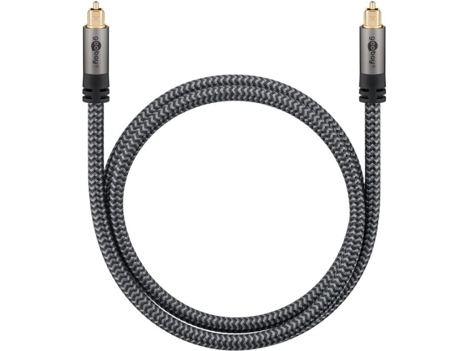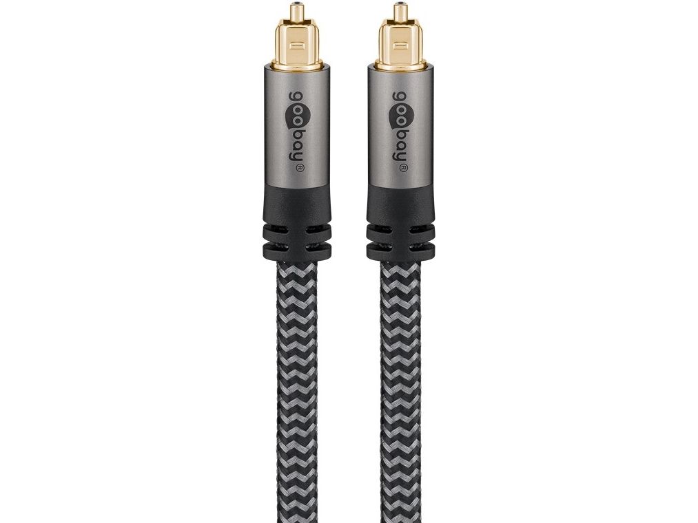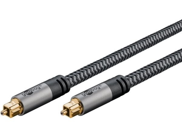 Toslink male > Toslink male Cable length TOSLINK cable for audio transmission from TVs, game consoles or Blu-ray players to hi-fi equipment such as a SoundBar, amplifier or stereo system As an optical, glass fibre audio cable, the cable is immune to electrical interference - unlike conventional copper cables With 10 m, the S/PDIF cable is the right length to easily connect a TV set and a hi-fi system with each other Flexible premium cable with slim metal plugs, bend protection and colour-matched textile cable The braided textile sheath provides a pleasant feel and is gentle on sensitive surfaces The cable bridges even long distances without interference or losses The gold-plated plugs prevent corrosion and are especially durable