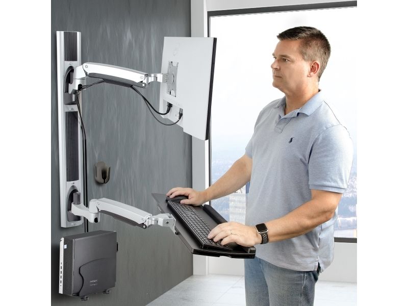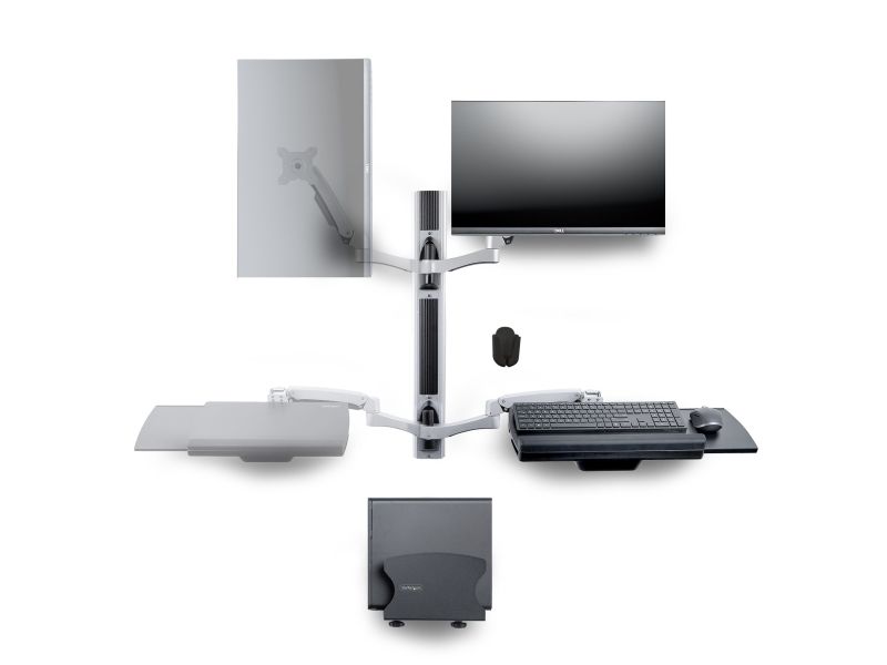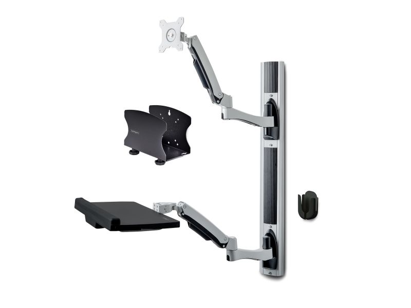 Startech Wall Mount Workstation, VESA Mount For 32" Monitors (22lb/10kg), Fully Articulating Arms For Single Monitor Mount & Keyboard Tray, Includes Desktop Computer/PC Bracket - Ergonomic Standing Desk (2PASTSC-WALL-MOUNT) monteringssæt - arbejdsstation - for fladt panel - sort - TAA-kompatibel