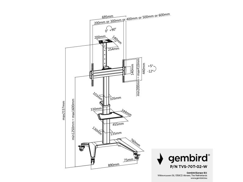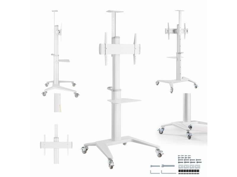 Elevate your viewing experience with the Gembird AV furniture cart, designed to bring functionality and style to your space. This cart is not just a stand for your TV; it's a solution that offers height, rotation, and tilt adjustments, allowing you to find the perfect viewing angle for any situation. Whether you're presenting in a meeting room or watching your favorite show at home, the integrated cable management system ensures that your setup remains neat and organized, free from the clutter of tangled wires. Constructed from durable aluminum and equipped with caster wheels, this cart is built to last and easy to move, providing the flexibility to change your viewing location as needed. It supports a broad range of TV sizes, from 37"-70", and comes with a comprehensive mounting kit, making installation straightforward. With its sleek design and practical features, this cart is an ideal choice for anyone looking to enhance their TV viewing setup.