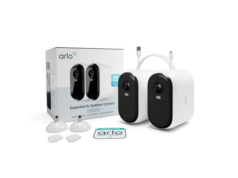 Arlo Essential XL Outdoor Security Camera, 2-cam, IP security camera, Indoor & outdoor, Wireless, Amazon Alexa & Google Assistant, FCC, IC, CE, Ceiling/Wall/Pole