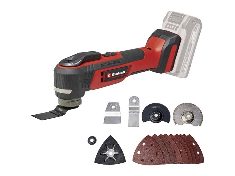 EINHELL Professional cordless multi-function tool TP-MG 18 Li BL-Solo 18V red/black (without battery and charger) incl. accessories