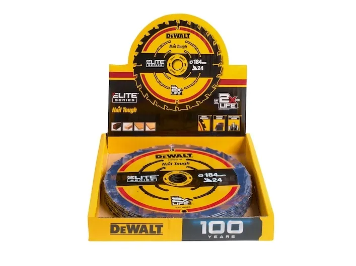 DeWALT DT10401-QZ. Type: Segmented rim diamond blade, Purpose: Dry cutting, Suitable for materials: Wood. Bore diameter: 1.6 cm, Blade diameter: 18.4 cm, Blade thickness: 1 mm. Quantity per pack: 10 pc(s)