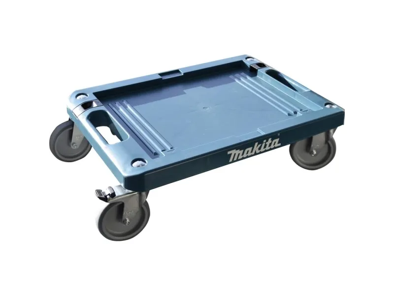 The MAKPAC Interlocking Case Cart (P-83886) provides a lightweight and maneuverable means of transporting MAKPAC cases. It is a practical way to move heavy Makita tools, accessories, and more, with a 220 lb. carrying capacity. It has two handles to easily pick up and transport when not in use. The Case Cart moves around with 4" swivel wheels, two with locking brake and two without. It has two locking latches that secure MAKPAC cases to the cart for quick transportation. It's part of the Makita MAKPAC Interlocking Storage System.