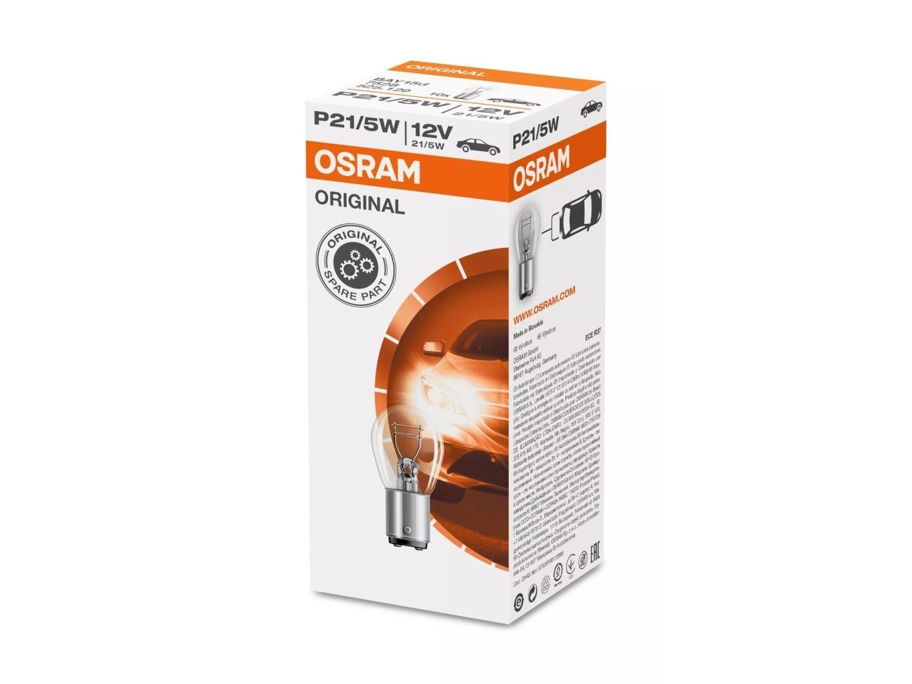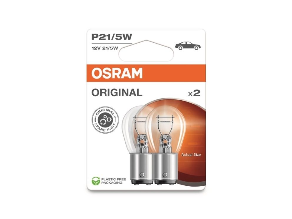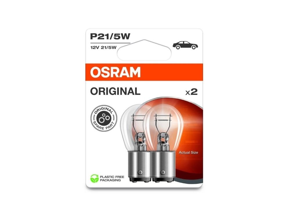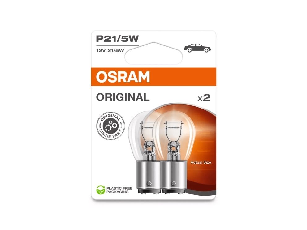 Brand- Osram. Article- 7528-2BL. Lamp type- Incandescent lamp. Bulb type by EEK- P21. Voltage- 12 V. Colour- Transparent. Socket- BAY15d. Lamp power- 5 W. Luminous flux (± 15%)- 440 lm. Average nominal lifespan- 4000 h. Number of Items- 1.