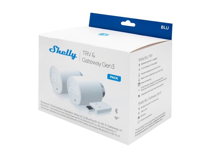 Shelly BLU TRV – Smart Radiator Thermostat for Ultimate Temperature Control. Achieve perfect room temperature control and high comfort with Shelly BLU TRV, a smart radiator thermostat that combines precise temperature control with the latest technology. Whether you want to ensure evenly heated rooms or desire flexible scheduling of your heating, Shelly BLU TRV is the ideal solution for your smart home. The thermostat is easily operated through the Shelly Smart Control app or manually by rotating the device. Shelly BLU TRV features a built-in multiprotocol chip that supports both Bluetooth and Zigbee in the same device. With the included BLU Gateway Gen3, it is possible to connect up to 5 radiator thermostats to a single gateway, which will connect your devices to the internet, allowing you to control the radiator thermostat from anywhere in the world. The built-in Zigbee also means that it is possible to connect Shelly TRV to your preferred Smart Home platform via Zigbee. Precise Temperature Control. With the ability to set the temperature with an accuracy of +/- 0.1°C, Shelly BLU TRV ensures that your home is always at the desired comfort temperature. The intuitive LED display clearly shows the current temperature setting, so you always have full control. Boost Mode – Quick Heating When Needed. When you need quick heating, Boost Mode can rapidly warm up the room, achieving optimal warmth in a short time. Smart Scheduling Reduces Heating Costs. Thanks to the advanced smart scheduling function, you can tailor the heating to your daily routines, which both increases comfort and reduces energy consumption. It is also possible to combine BLU TRV with external sensors like Shelly BLU H&T, which provides more accurate room temperature measurement, or Shelly BLU Door/Window, which can turn off the heating when a door or window is opened. Long Battery Life. Shelly BLU TRV uses 2x 1.5V AA batteries (included), providing a lifespan of up to 2 years, depending on usage. Smart Home Integrations. Shelly BLU TRV is easily set up and controlled through the Shelly Smart Control app or your preferred Smart Home system. Shelly can be used alone in the Shelly Smart Control app or with more than 200 partner systems such as Google Home, Amazon Alexa, Home Assistant, Samsung SmartThings, Athom Homey, and many more.