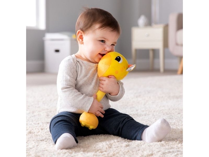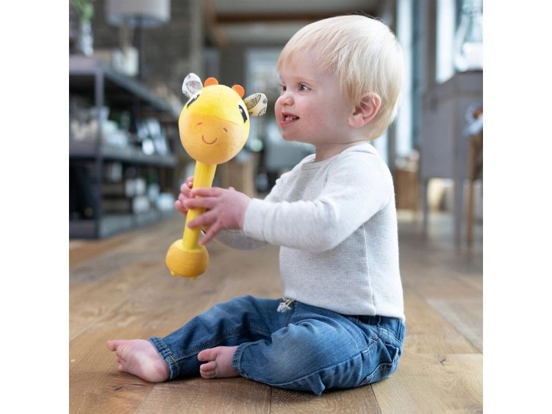 Finally, a toy baby can actually swing around and bash! With a happy plush giraffe head on one end and a soft, safe base on the other, this unique sensory toy lets little ones swing it and hit things without causing any damage. Meanwhile, with each bash, kids hear another fun and wacky sound! (Don’t worry, it has an off button too.) Meet the “hitting phase” head-on with a friendly face and plenty of giggles.