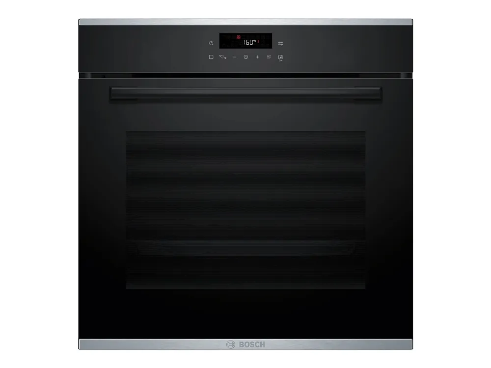 Experience precision cooking with the Bosch Serie | 4 electric oven, designed for efficiency and performance. This large 71-liter capacity oven features a drop-down door and an LED display, allowing for easy operation and access. With an array of cooking programs including hot air, pizza, and air fry, culinary creativity is at your fingertips. The oven offers seven heating modes and multiple automatic cooking functions to ensure optimal results for any dish. The Bosch HBA272BB3 is built with energy efficiency in mind, rated Class A+ for energy consumption. It also features pyrolytic self-cleaning technology, making maintenance straightforward. Enjoy the convenience of a programmable timer and touch controls, while the black glass door adds a sleek aesthetic to any kitchen.