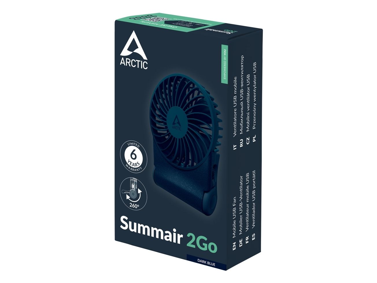 The ARCTIC Summair 2Go portable cooling fan is designed for individuals seeking relief from heat wherever they go. This handy device boasts a lithium-ion battery, providing a 5000 mAh capacity for extended usage. With a variable speed setting that allows for customized airflow, the fan operates at a rotation speed of 4300 rpm while delivering an air flow tilt of 260°, making it adaptable to different settings. The inclusion of a carry handle and foldable stand enhances portability and convenience, allowing for effortless transport and setup. It's an ideal companion for outdoor activities, office spaces, or anywhere you need cooling comfort.