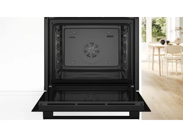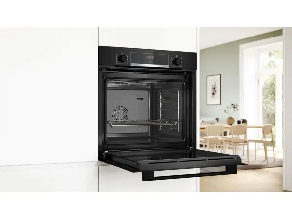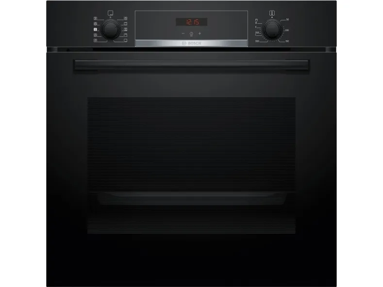 Bosch Serie 4 HQA534BB3. Oven size: Medium, Oven type: Electric, Total oven(s) interior capacity: 71 L. Appliance placement: Built-in, Product colour: Black, Control type: Rotary, Touch. Timer type: Digital. Energy efficiency class: A+, Energy consumption (conventional): 0.94 kWh, Energy consumption (forced convection): 0.69 kWh. Lamps quantity: 1 lamp(s), Lamp type: Halogen
