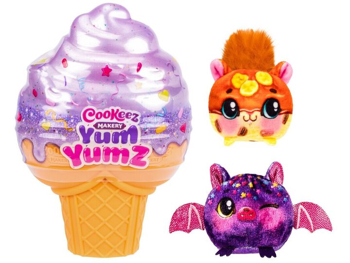 Cookeez Makery Yum Yumz Twin Pack. Add ingredients & discover 2 super-cute scented surprise plush pets inside an ice cream cone! Stick 'em, style 'em and dress up your stuff! Scoop up the fun and collect every one! Over 30 Yum Yumz to collect.