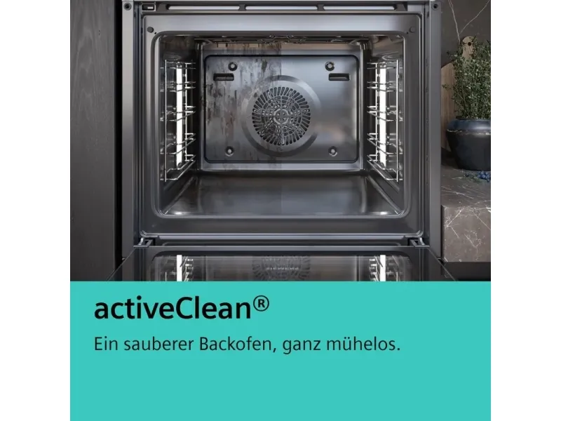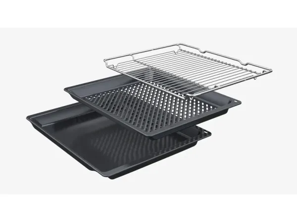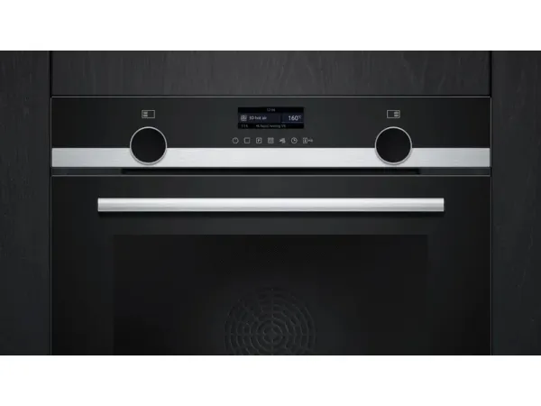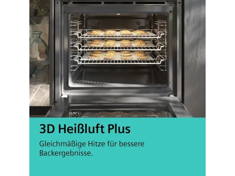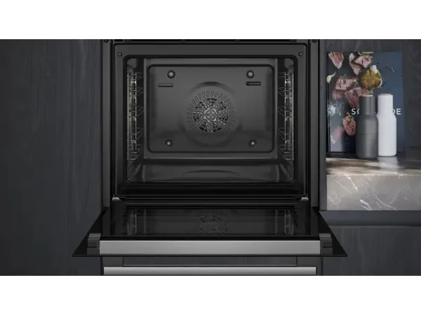 The Siemens iQ500 HB579GBR3 built-in electric oven offers a 71-liter capacity, catering to various culinary needs with its cooking programs such as hot air grilling, pizza, and air fry. This oven's array of features includes an automatic rapid preheat function and a self-cleaning system, ensuring convenient and efficient cooking experiences. Designed with energy efficiency in mind, it boasts an Energy Class of A+, helping to save on energy consumption without compromising performance. Safety is paramount with this model, equipped with a safety switch, electronic door lock, and ChildLock feature, providing peace of mind during cooking. The quadruple glazed door and cool touch door enhance safety, while a fan cooling system prevents overheating. Experience the versatility of 14 different heating modes, along with the benefits of a drop-down door design for easy access.