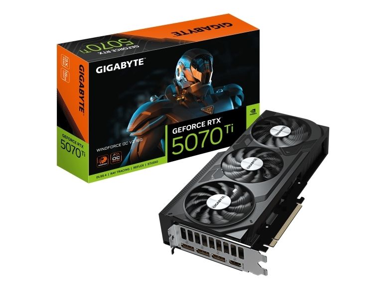 The GIGABYTE WINDFORCE OC V2 graphics card delivers performance for gaming and creative applications. With its NVIDIA GeForce RTX 5070 Ti graphics processor and 16 GB of GDDR7 SDRAM, it handles demanding tasks. The card supports up to four monitors with a maximum external resolution of 7680 x 4320, making it suitable for multitasking and immersive gaming.
