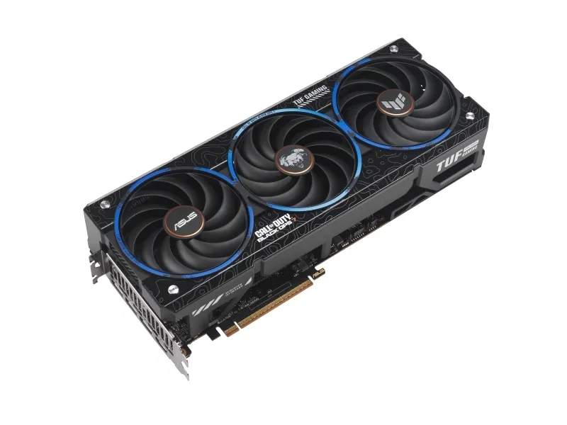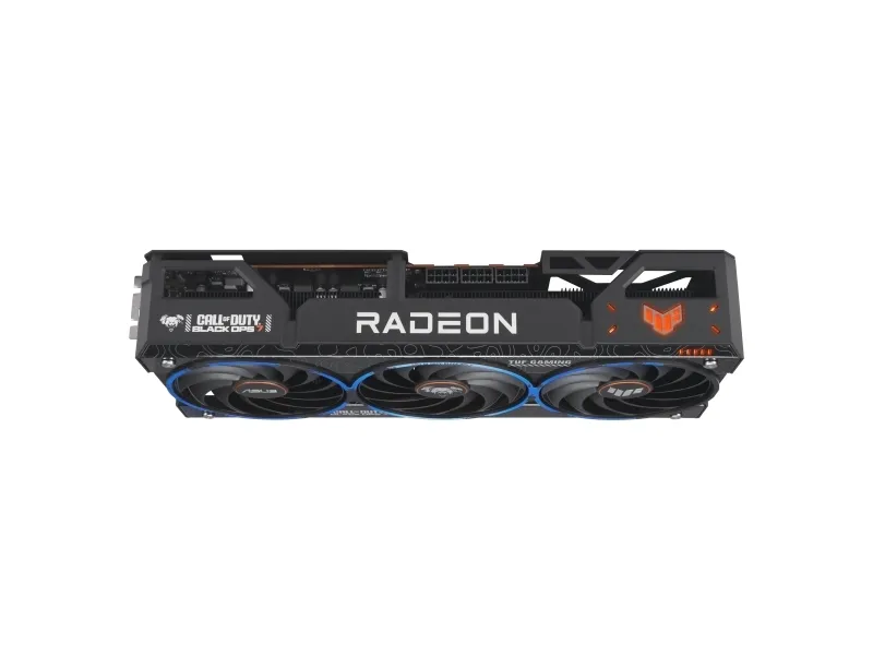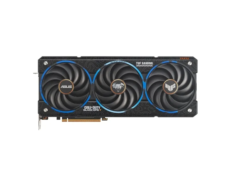 The ASUS TUF Gaming Call of Duty Black Ops 7 Special Edition video card delivers high-performance graphics for gamers and creators. Powered by the AMD Radeon RX 9070 XT, it features 16 GB of GDDR6 SDRAM memory on a 256-bit bus, ensuring smooth gameplay and stunning visuals. With the ability to connect up to four monitors and support for max external resolutions of up to 7680 x 4320, this video card brings an immersive gaming experience to life. Equipped with technologies such as AUTO-EXTREME, MaxContact, and ASUS GPU Guard, the card maintains optimal performance and reliability. A triple fan design with dual ball bearing fans ensures effective cooling under heavy loads, while the phase-change thermal pad helps manage heat. Featuring a range of interfaces including DisplayPort and HDMI, this video card meets modern connectivity needs, making it a compelling choice for serious gamers and professionals.