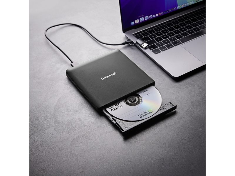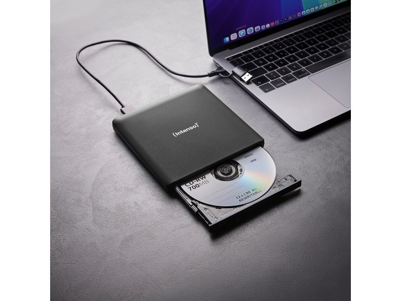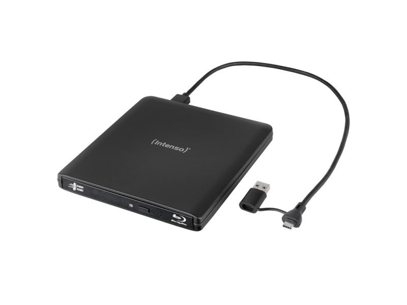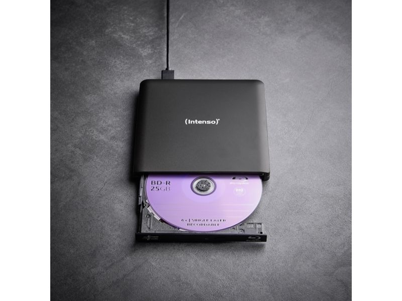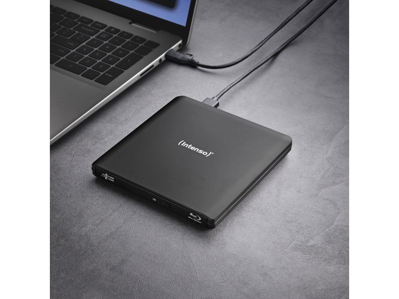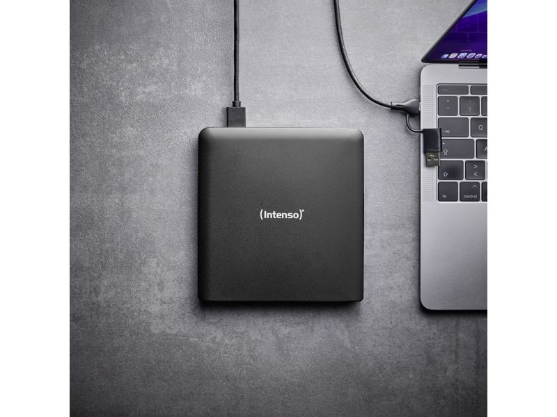 Versatile Blu-ray burner for the highest demands. For movies, data or music. The Intenso EOD 500BD Slim is the perfect companion for anyone who wants to securely store or play back data, movies, or music. This external Blu-ray burner reads and writes Blu-ray, DVD, and CD media at high speeds while supporting a wide range of formats. Thanks to its compact aluminum housing and easy USB connection, it is ideal for flexible use at home or on the go.