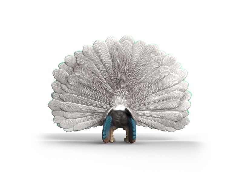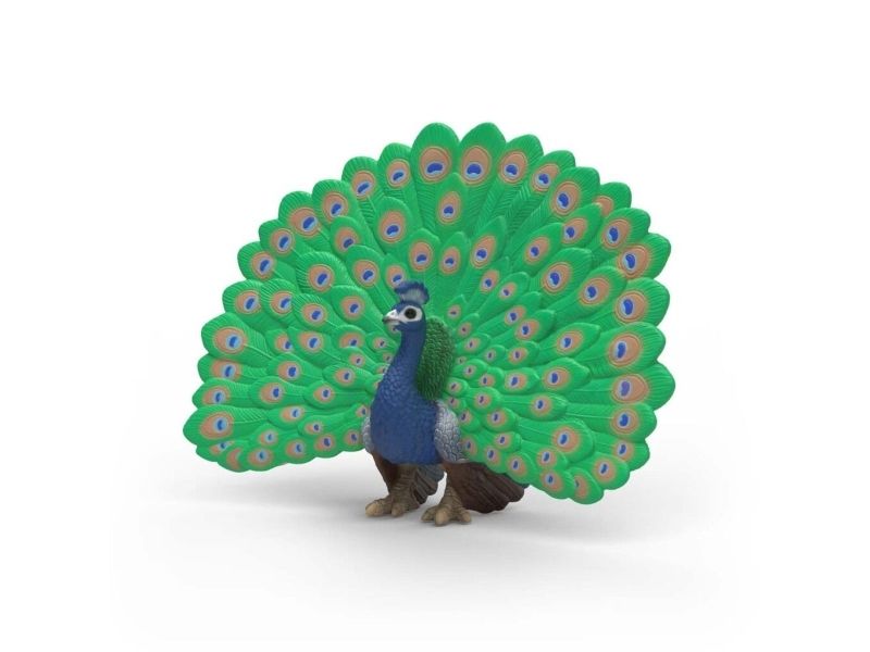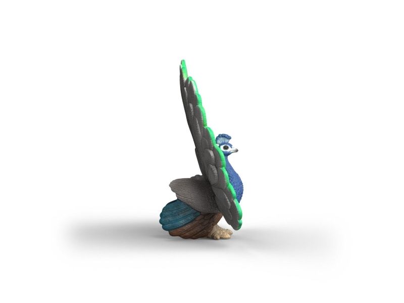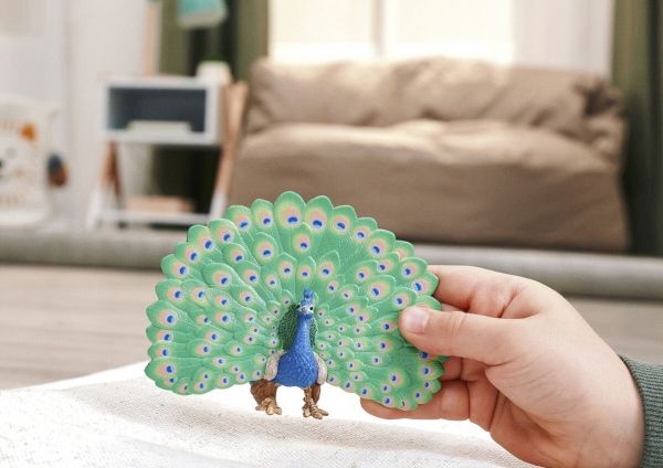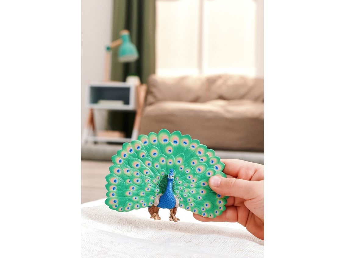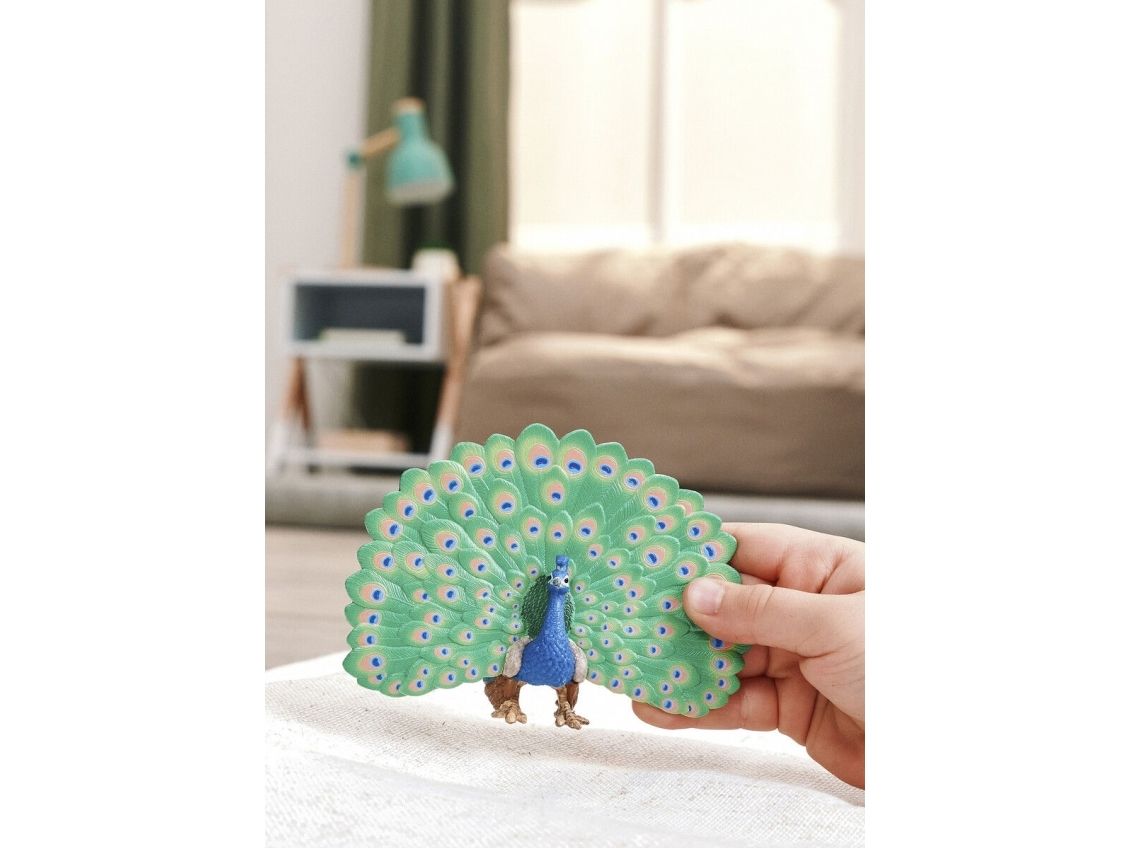 The peacock is undoubtedly the most elegant inhabitant of the farm. With his head held high, he strides majestically across the courtyard. He knows exactly how beautiful he is. He carries his long neck stretched out and balances a delightful crown of feathers on his small head. It makes a magnificent wheel out of its long tail feathers. Then you can see the colourful feathers in blue, green and gold. Even the hens are amazed – their cockerel can't do that! The peacock originally comes from India, but it also feels at home with Farmer Paul as long as it has enough space to strut its stuff.