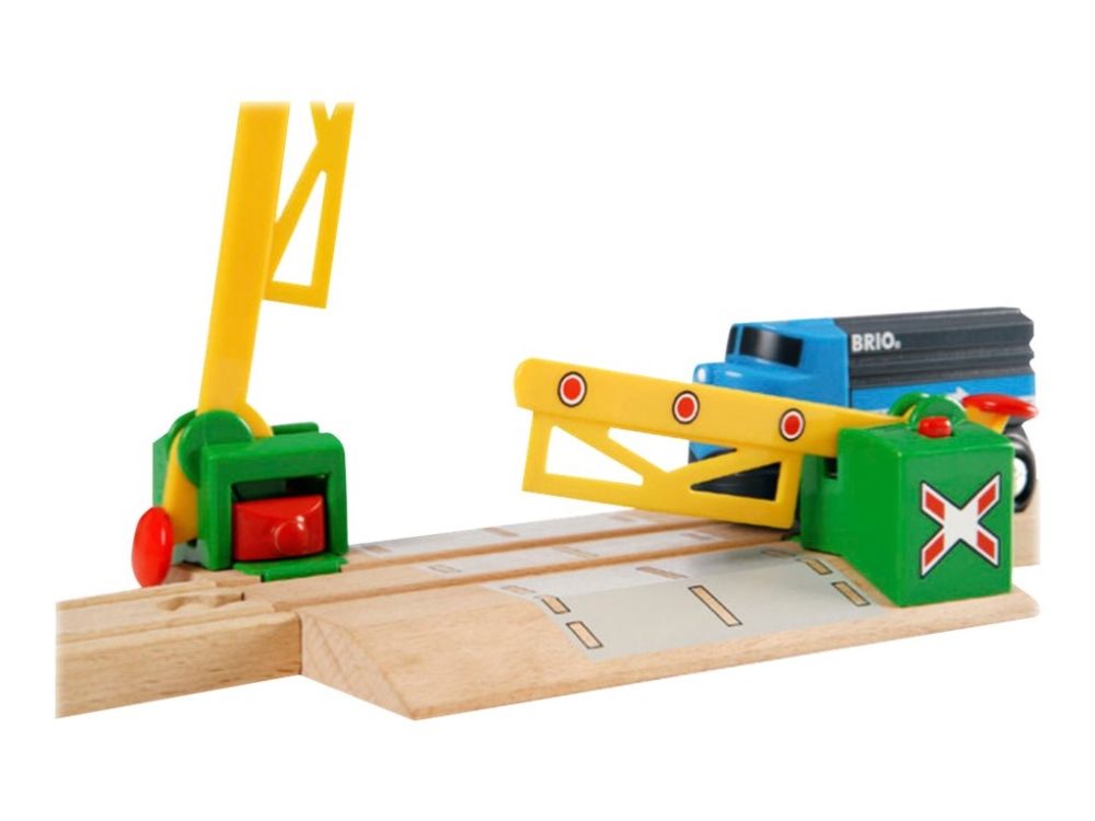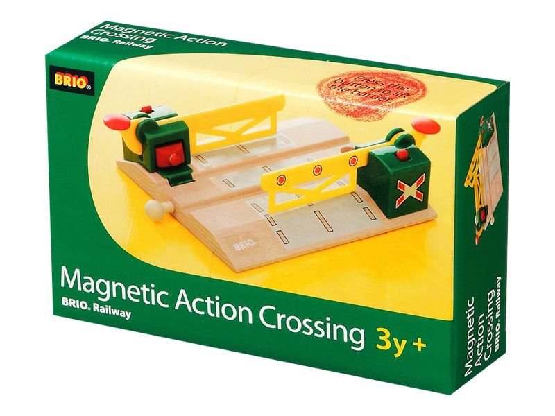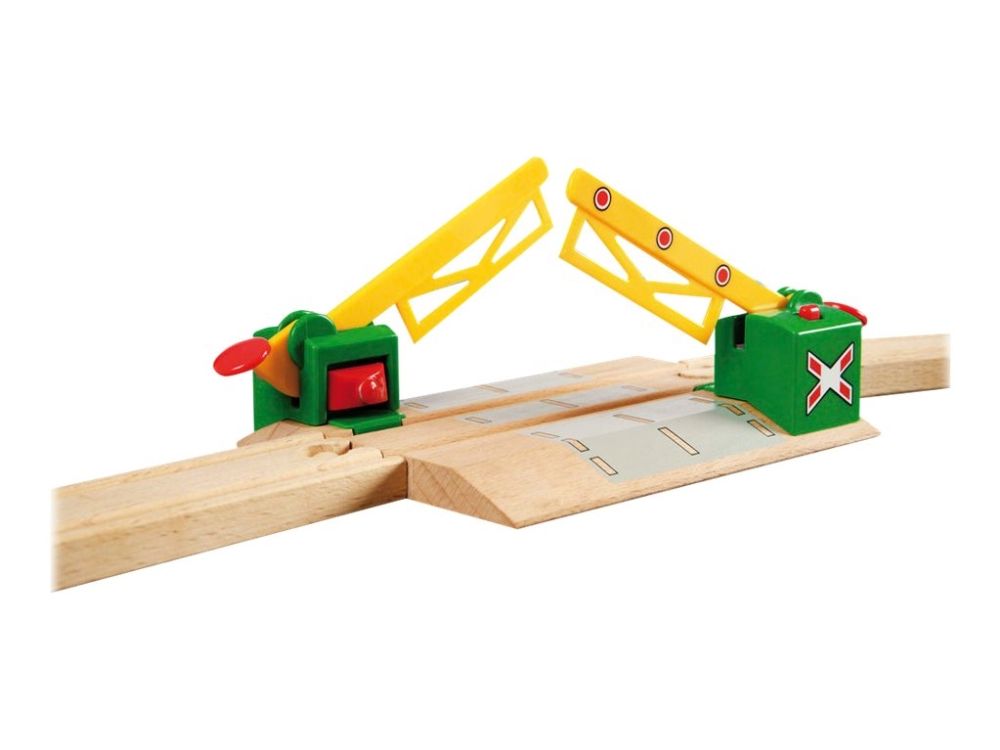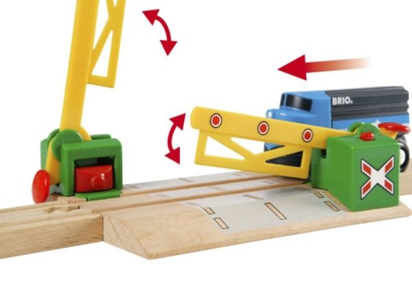 Der Straßenverkehr wird mit Magnetkraft angehalten, wenn ein Zug vorbeikommt. Einfach raufdrücken, und schon gehen die Schranken hoch und kann der Autoverkehr wieder passieren.