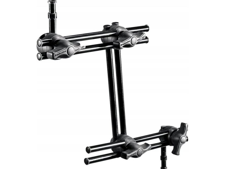 Excellent performance: robust, light and versatile - these are the features of the new double articulated arm range. The 396 family has been developed to provide greater robustness than the 196 range and to support heavier loads (upto 5kg), maintaining versatility thanks to its extendable sliding arm system (extends upto 860mm), further enhanced by its quick lock system. The new bottom attachment adds to the strength and versatility of the 396, with a spigot that combines both a hexagonal part (for anti-rotation fixing to the Superclamp system) and a universal adapter section (for fitting to a wide range of stands, clamps and accessories). The top attachment is provided with a 16mm spigot 3/8'' light attachment, while the bottom attachment is provided with a double-anchored 16mm hexagonal/universal spigot.