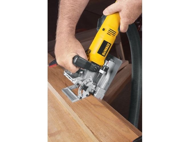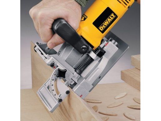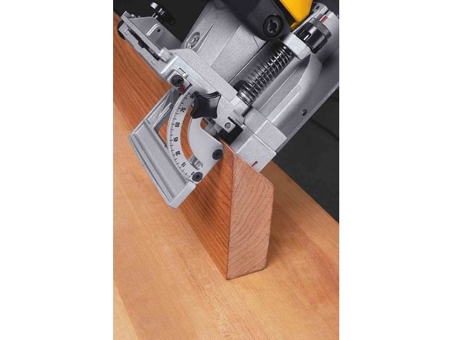 FEATURES - 6.5 amp, 10,000 rpm motor provides power for working in the hardest woods - Dual rack and pinion fence ensure blade and fence are always parallel for accurate joints every time - Integral one-piece fence is adjustable and tilts 0-90° - Flush cuts can be made at 0° without removing fence - 45-degree locating notch in fence allows indexing off the outside surface of a mitered joint - Non-marring, heavy-duty aluminum shoe allows joiner to be clamped for stationary work - Retractable, anti-slip pins help hold work in place - Preset depth stops for all common biscuit sizes