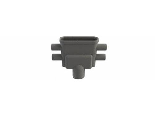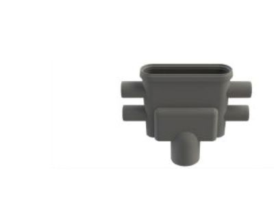 Unidrain outlet housing with Ø75 mm vertical outlet, Ø40 mm side inlet and removable water trap