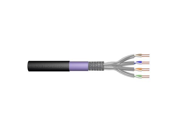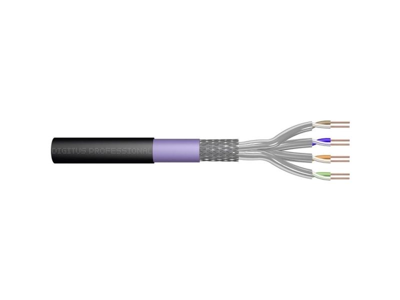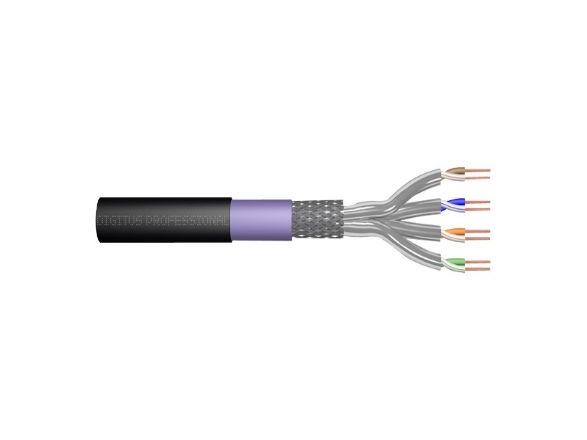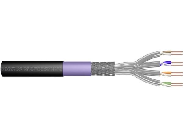 The Digitus® Professional Cat.7 S/FTP burial installation cable is characterized by the following cable construction 4x2x AWG23/1 and reaches a transmission frequency up to 1200 MHz. The cable has a PE outer jacket and a halogen free inner jacket and is conform to the standard IEC 60332-1, FRNC-B, LSZH-1 and CPR Euro class Eca. The cable is suitable for installations in dry or wet areas, outdoor or ground. Compliant with the following standards ISO/IEC 11801, DIN EN 50173, DIN EN 50288-4-1.