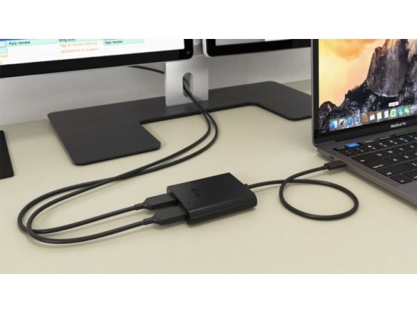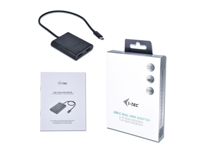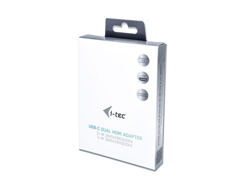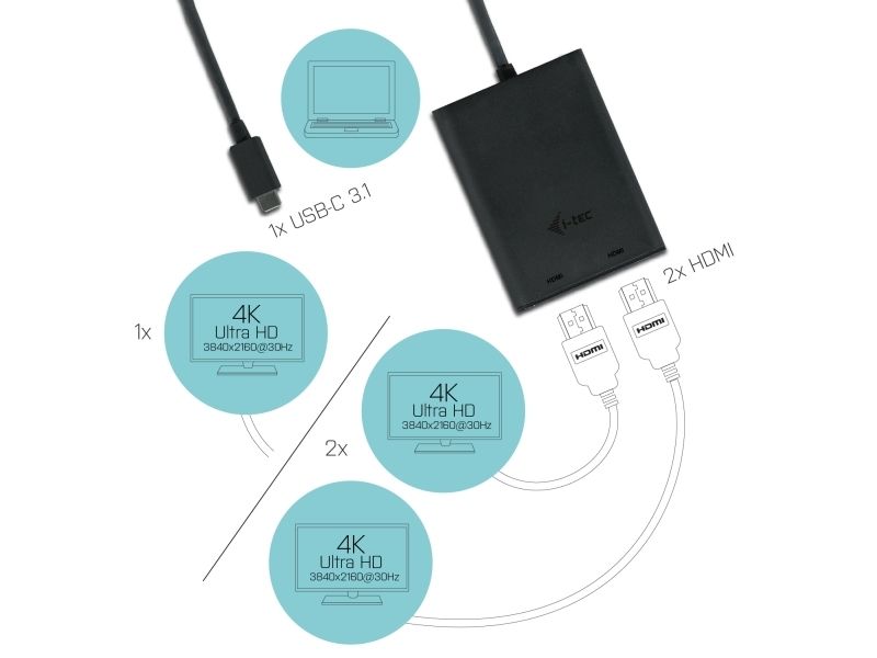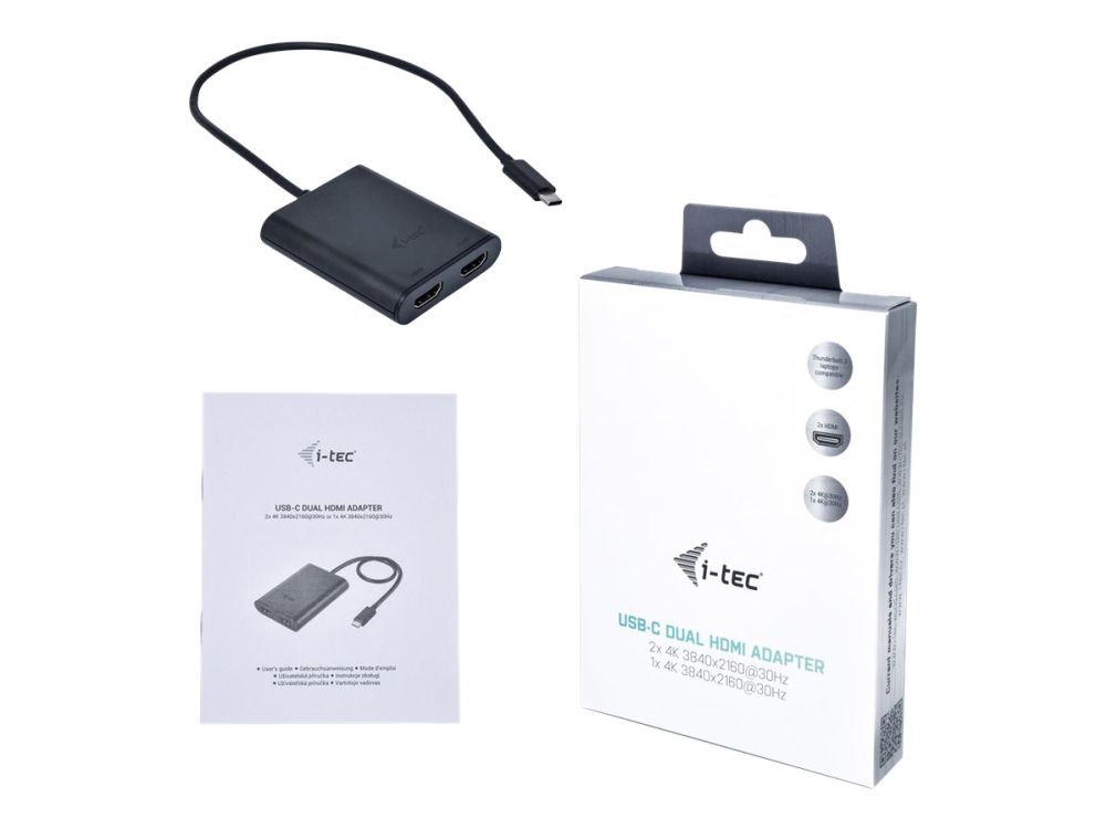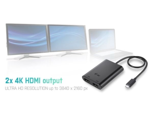 Expand your desktop to two external HDMI monitors or connect projectors or television with HDMI interface to your notebook, tablet or PC via USB-C or Thunderbolt 3 connector. The adapter supports 4K Ultra HD video with resolution up to 3840 x 2160 px and stereo sound.