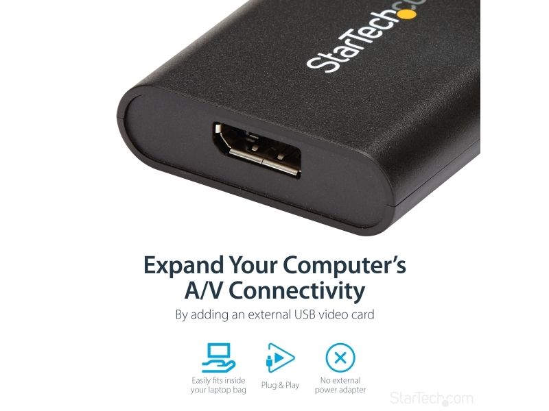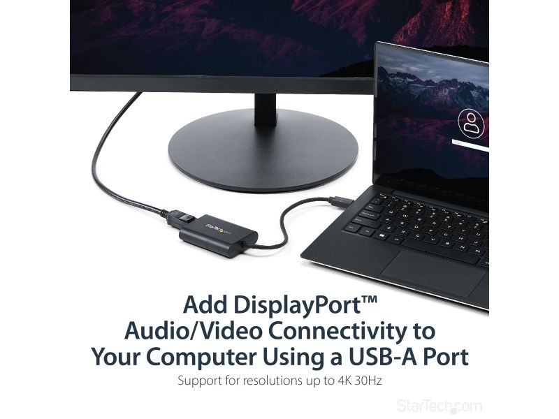Use this USB 3.0 to DisplayPort video adapter to add a 4K capable monitor to your computer. This USB to DisplayPort adapter lets you connect your computer to a 4K DisplayPort monitor using a USB 3.0 Type-A port, even if your computer doesn't support 4K video.