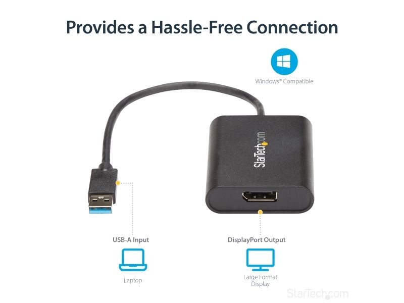 StarTech.com USB 3.0 to DisplayPort Adapter, USB DP Monitor Converter for Windows, 4K (no support for macOS/ChromeOS/Linux) - TAA, 3.2 Gen 1 (3.1 Gen 1), USB Type-A, DisplayPort output, 3840 x 2160 pixels