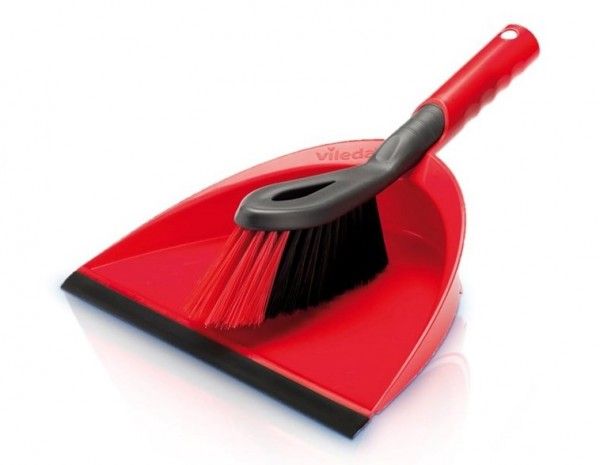 The Vileda 2 in 1 Dustpan and Brush is designed to make sweeping the floors easier The flexible rubber lip helps mold the pan edge to uneven floor surfaces for more effective dust pick up. The brush is made from 2 types of bristles; 1. Black bristles for fine dust, particles and hairs 2. Red angled bristles for effective corner cleaning. The brush nestles into the pan for easy storage when not in use.