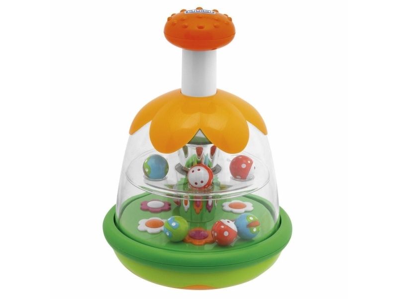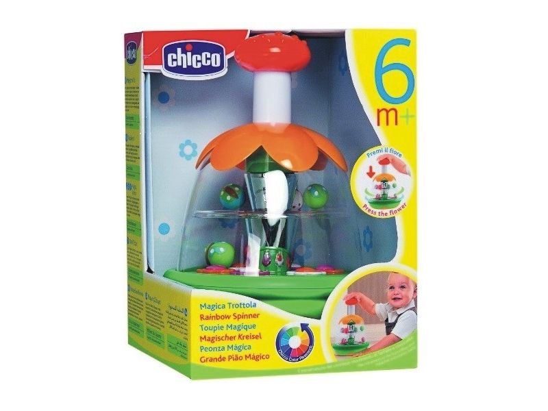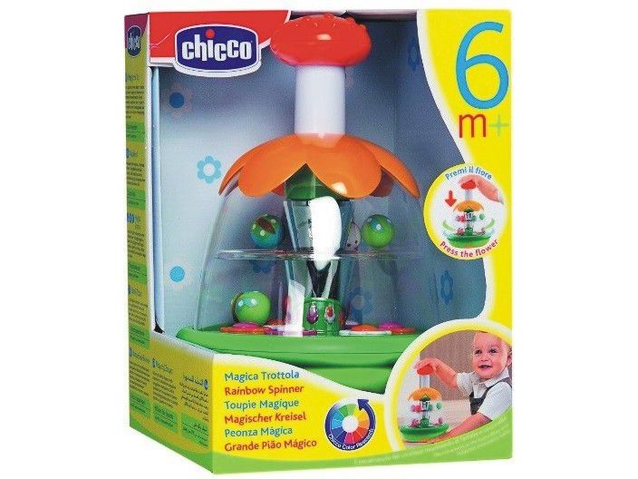 Rainbow Spinner features lots of butterflies and ladybirds that spin around inside, while the central mirror magnifies the attractive kaleidoscope of colours and movement to catch baby's attention.