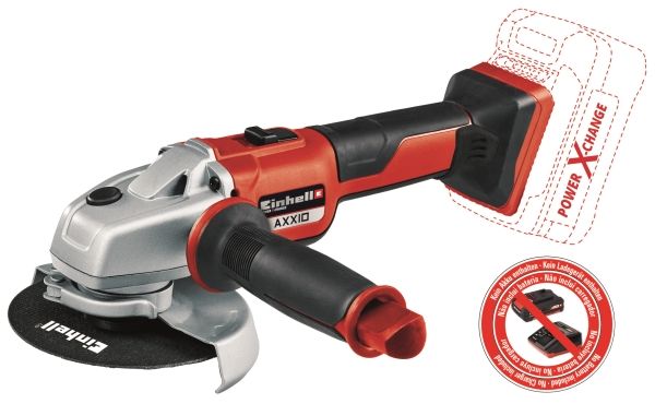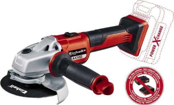 The Einhell cordless angle grinder Axxio is a practical tool when working in the workshop, home or garage. Powerful cordless and easy to work with - these were the qualities that featured high in the list of design criteria. The angle grinder is part of the Power X-Change family of products, where the battery can be used in all devices in the system series. The 2.6 Ah Plus battery and higher-performance series batteries deliver optimum results. The brushless motor offers greater power and a longer lifetime. The soft start function and restart protection make it safer to use. Meanwhile, comfortable working is ensured via the slim design with its ergonomic soft grip and additional handle. The separation of motor and gearing provides for smooth operation, while the quick-adjust cutter guard enables flexible working. For flexibility the additional handle can be fitted in two positions. The cordless angle grinder is equipped with overload protection, and the robust aluminum gearing housing is designed for long working life. This product comes without a battery or charger. Similarly, a matching cutter (disk diameter 125 mm) is available separately.