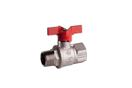 PETTINAROLI tea-coated ball valve with red T-handle socket/nipple 1/2"