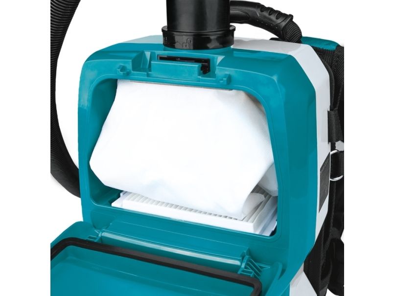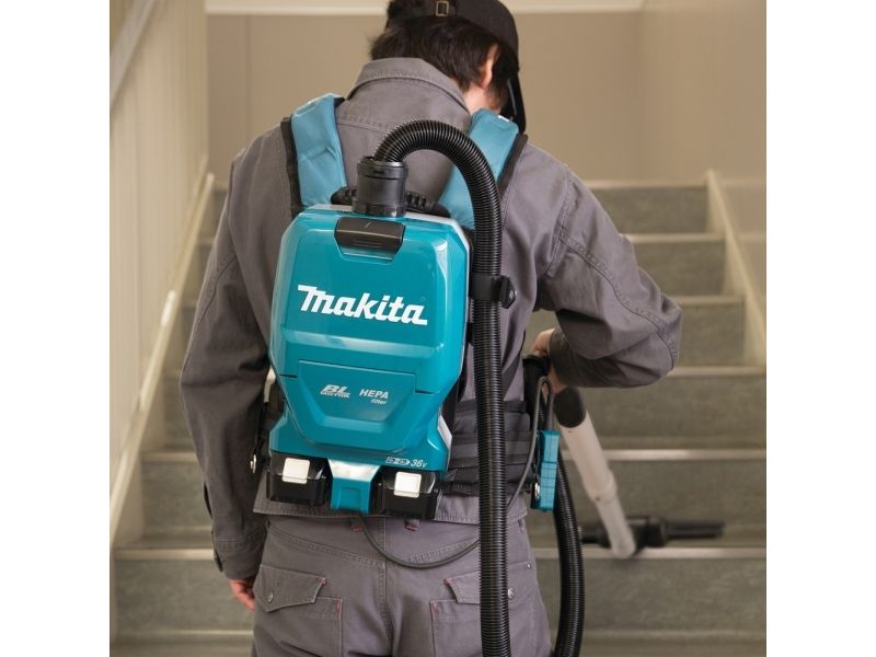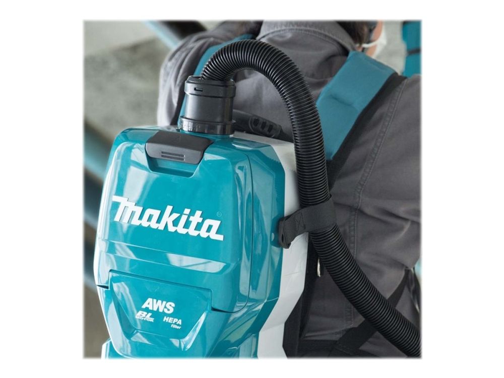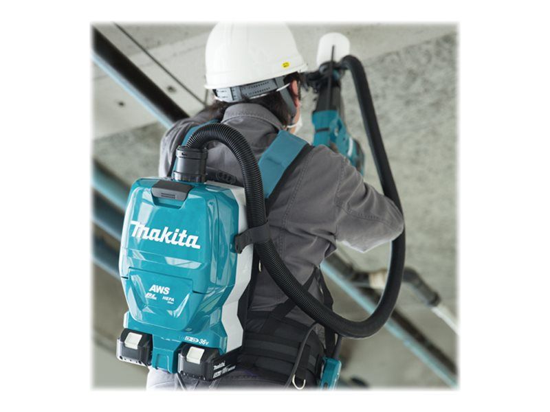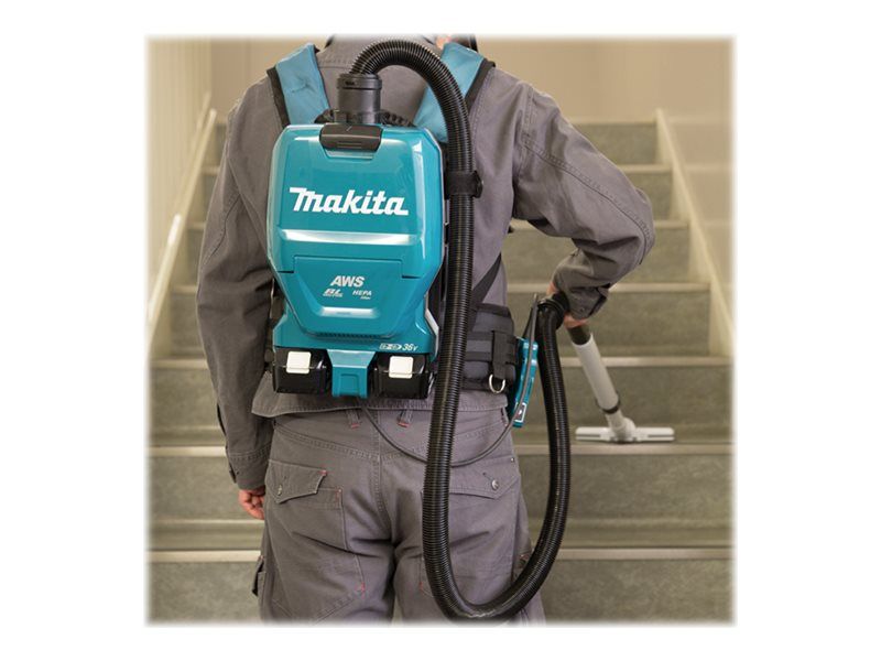 DVC265 is a cordless backpack vacuum cleaner powered by two li-ion batteries in series and equipped with AWS.