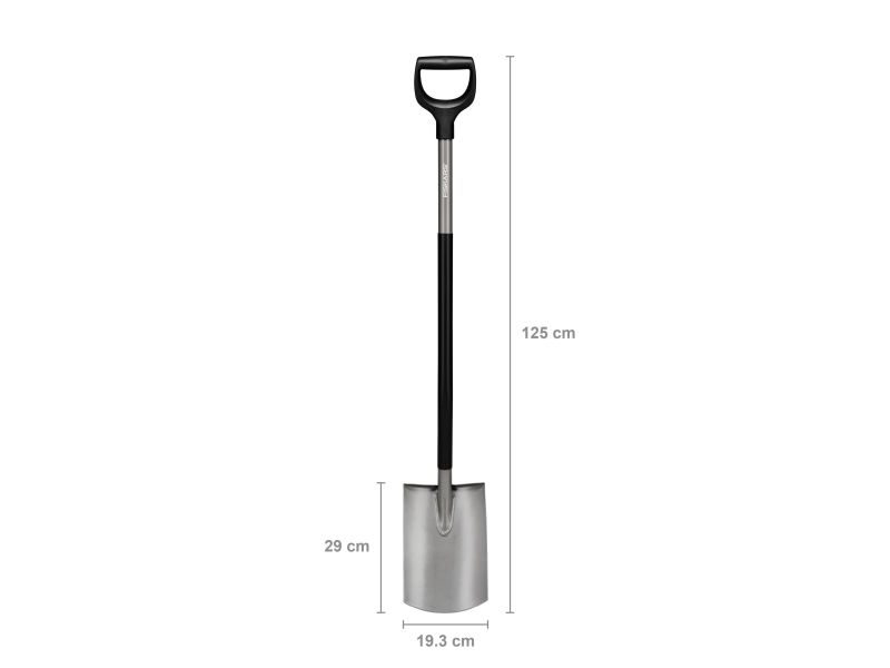 Brand- Fiskars. Article- 1066710. Length- 1250 - 1250mm. Weight- 2 kg. Colour- Black. Mandatory warranty- 24 mo. Warranty for legal entities- 12 mo. Additional information- Straight blades. For easy work. Steel shovel with a plastic coating. Angle between the blade and the handle 26°. Sharp shovel. Non-repairable..