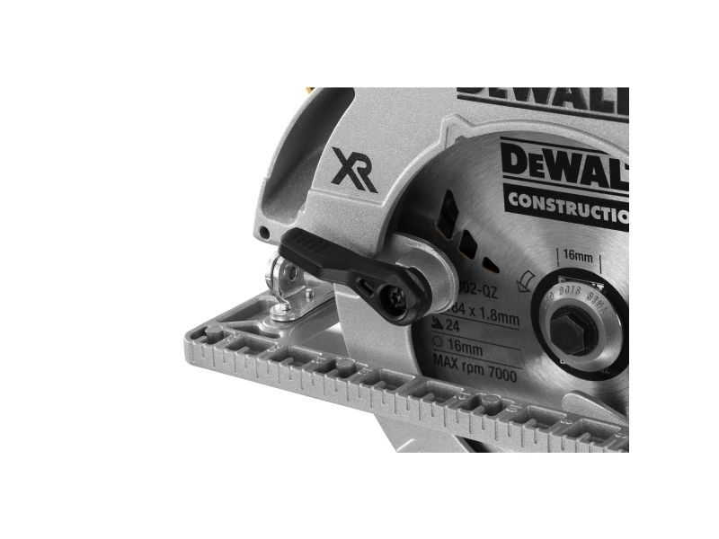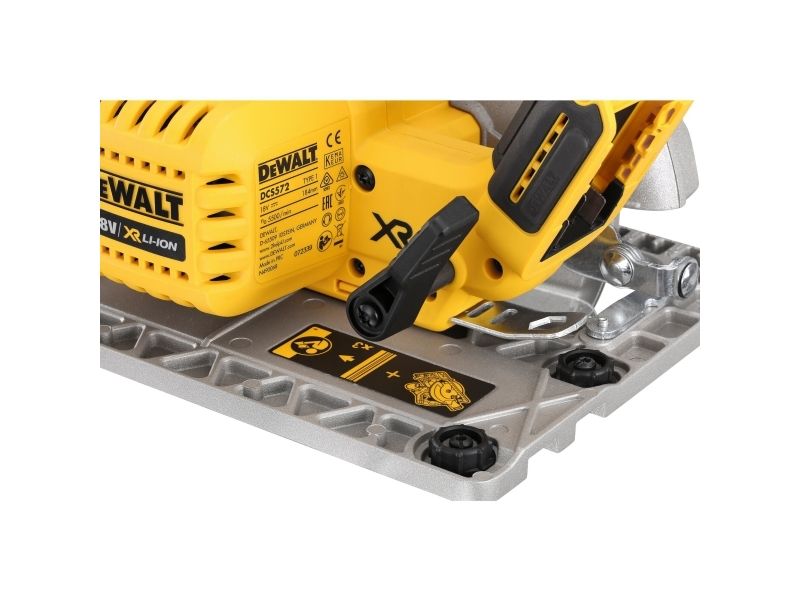 DeWALT DCS572NT. Product colour: Yellow. Blade diameter: 18.4 cm, Idle speed (max): 5500 RPM, Cutting depth (45º): 4.4 cm. Power source: Battery