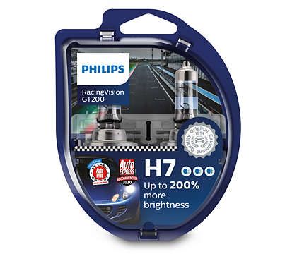See a step change in visibility and driving excitement The highest performer in our portfolio, Philips RacingVision GT200 delivers the super-bright visibility of a rally bulb in a format you can use on public roads. Experience the razor-sharp clarity of up to 200% brighter light(1). The optimised bulb design provides higher luminance for a better view of the road ahead, giving you a safer, more exciting drive.