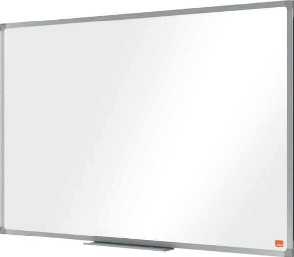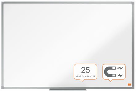Enamel magnetic whiteboard with an anodised aluminum trim. Fixed by a through corner wall mounting and supplied with a whiteboard pen tray. The enamel magnetic whiteboard surface offers a superior level of erasability and durability for frequent use. Size: 90x60cm.