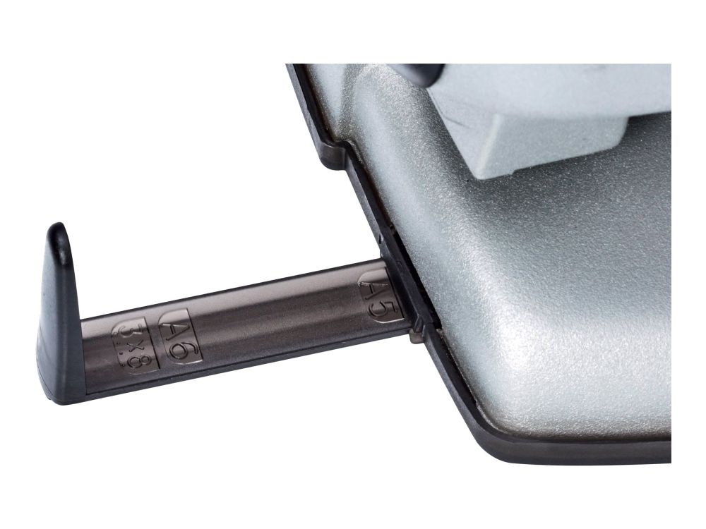 - Hard wearing steel punch, ideally suited to constant use - Soft feel handle insert for comfortable operation - Plastic paper guide for A4, US, B5, A5, B6 and A6 - Handle Lock down