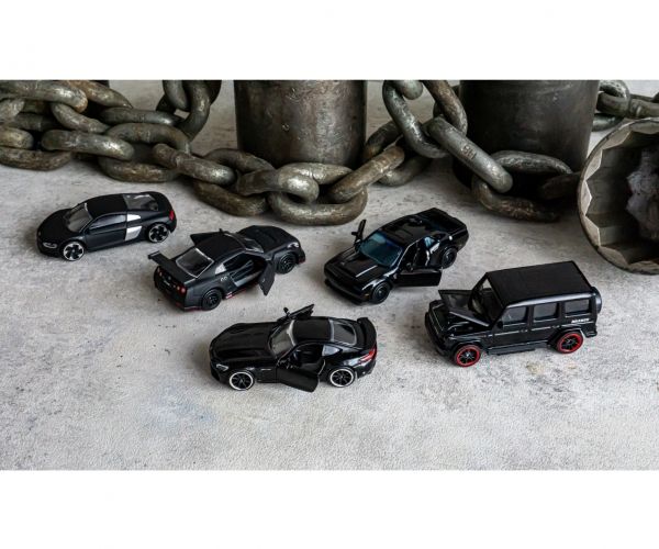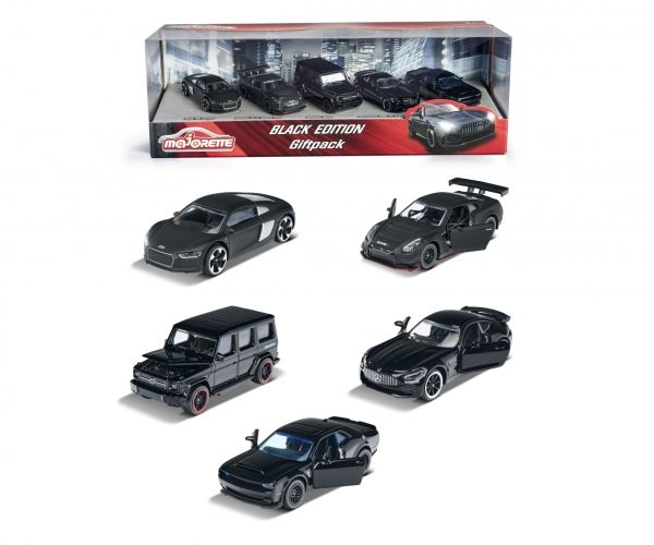 The Majorette Black Edition 5 Pieces Giftpack brings a vibrant collection of finely detailed vehicles, perfect for collectors and young enthusiasts aged 3 years and up. Each giftpack includes five distinct models, showcasing a range of cars such as the Mercedes-AMG GT R, Dodge Challenger SRT Demon, Nissan GT-R Nismo GT3, Brabus B63s, and Audi R8 Coupé. These models, crafted from durable plastic and metal, are designed at a scale of 1:64, making them ideal for engaging play while enhancing fine motor skills. This set offers an exciting way to explore the world of cars and is an addition to any vehicle collection.