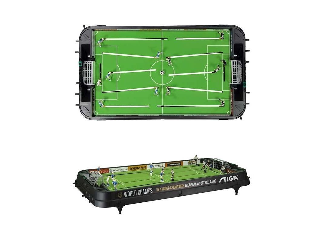 The worlds most popular sport as a table top game. With the STIGA World champs you control the football players and shoot the ball by using the rods. Fast and easy assembly. For two players.STIGA Sports 71-1383-21. Product type: Attachable, Games: Table football, Target audience: Adults & Children. Width: 940 mm, Depth: 500 mm