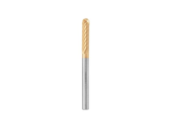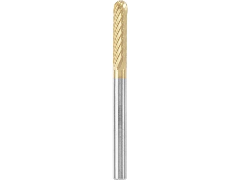What can you do with it? The extra strong bit is made out of Hardened Steel (HSS) and is coated in Titanium Nitride (TiN) to take on your demanding functional or creative DIY projects that require precision. The 3.2 mm accessory can be used for more aggressive applications to shape, smooth, or grind hard materials such as metals, hardened steel, fire ceramics, cast iron, plastics, and hard woods. The carving bit works well for projects like metal or glass engraving, stone carving, or removing flash from castings. The cylinder shape of the carving bit allows for deep removal of material, cutting flat areas, rounding edges as well as making stop cuts and V-cuts. The accessory tip makes round bottom slots and grooves, round side cuts and V-cuts when held at 45-degrees.